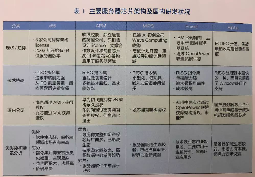 中游IT基礎設備部分,以服務器好存儲為例,國內廠商大力投入研發(fā)資源,當前,除核心芯片外,我國服務器零部件國產化率已經超過60%。但是當前的主要瓶頸,還是無論在服務器、存儲還是網絡設備領域,X86架構芯片都占據較大的市場份額。我國云計算IT基礎設備廠商在積極研發(fā)自主可控的非X86架構芯片,目前應用較多的是基于ARM架構的華為鯤鵬芯片泰山服務器、基于天津飛騰芯片的服務器。