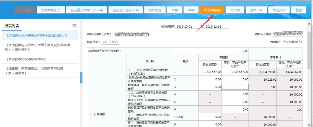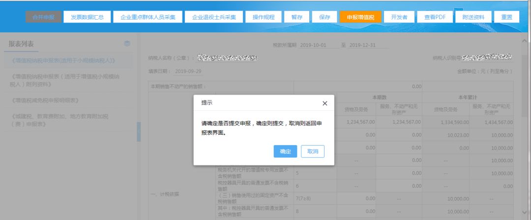 (3)填寫完整增值稅小規(guī)模申報表后,點擊【申報增值稅】按鈕,系統(tǒng)僅提交增值稅申報;