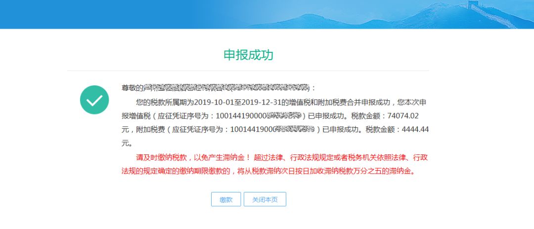(6)系統(tǒng)返回申報成功回執(zhí)。