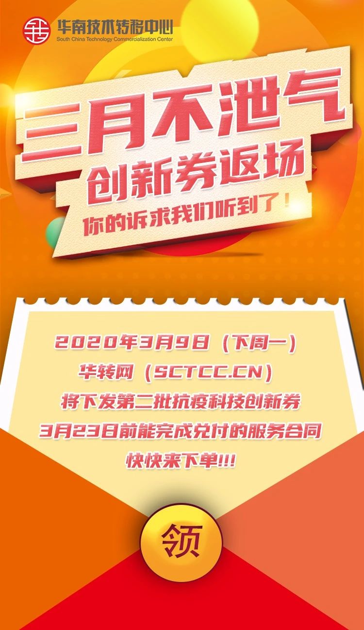 2020226日華轉網發放首批800萬應急創新券后,三月再次迎來好消息,預計于39日(周一),華轉網(sctcc.cn)將再次新增一批抗疫科技創新券額度發放。