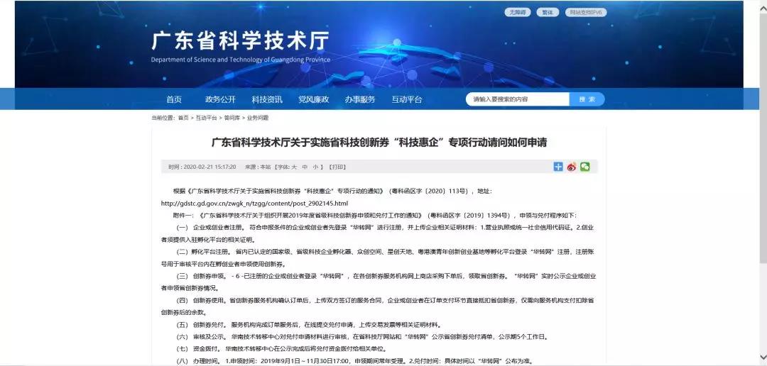 221日,廣東省科學技術廳發布了《廣東省科學技術廳關于實施省科技創新券科技惠企專項行動請問如何申請》,為科技型中小企業申領創新券指明道路。