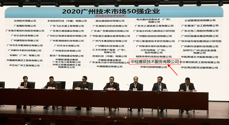 202132日,廣州市政府新聞辦舉行新聞發布會,邀請相關政府部門、高校、科研機構和企業代表分享科技成果轉化經驗,并發布“2020廣州技術市場年度榜單”。中檢賽辰技術服務有限公司(簡稱:賽辰)位列2020廣州技術市場50強企業”榜單,賽辰在推動科技成果轉移轉化的能力深受認可