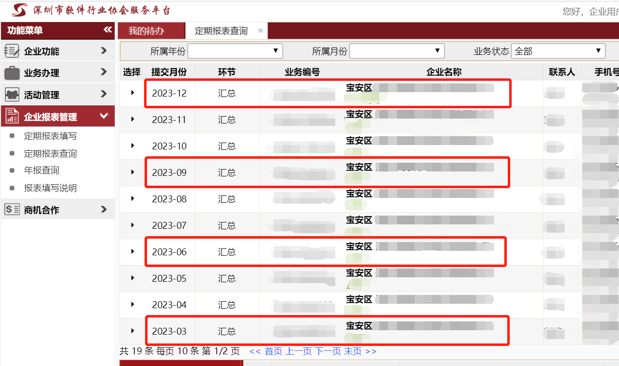 根據往年申報情況,請各有關單位在申報項目前及時登錄深圳市軟件行業服務平臺(http://app.ssia.org.cn)查看是否已定期報送統計數據。按照產業主管部門意見,應提供2022年度統計年報或2023年定期報表(包括全年四個季度的定期報表,即2023年1-3月、1-6月、1-9月和1-12月)的填報記錄截圖,并于2024年3月填報2023年度統計年報(年報通知擬于2024年2月正式發布)。由于2022年度統計年報已過填報時間,如未填寫2022年度統計年報的單位應提供2023年定期報表,并在年報通知發布后及時填寫2023年度統計年報,以免影響項目申報。
